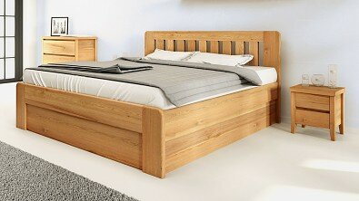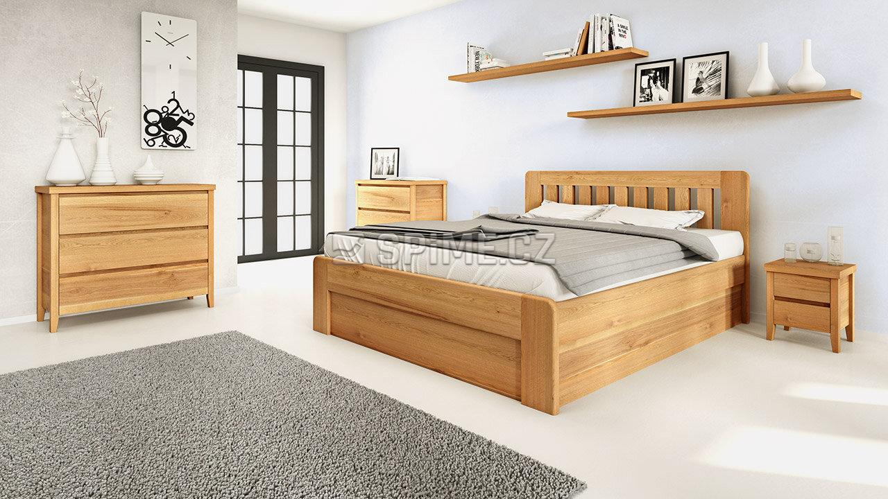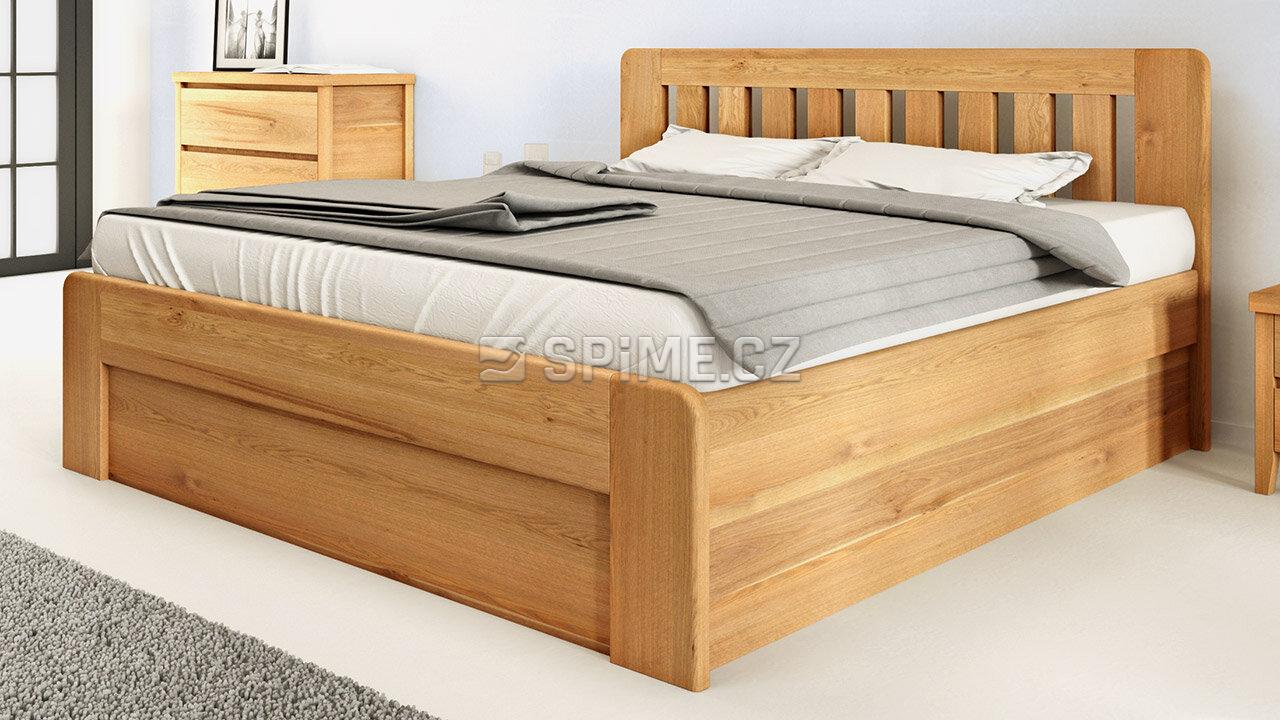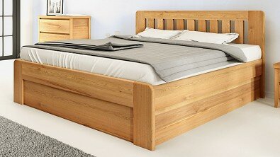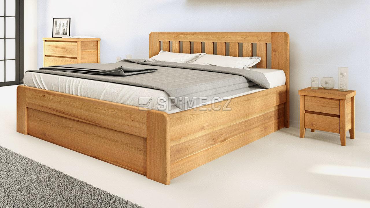 Postel z masivu s úložným prostorem SISI dvoulůžko. Dřevěná postel o šíři masivu 3,7 cm.