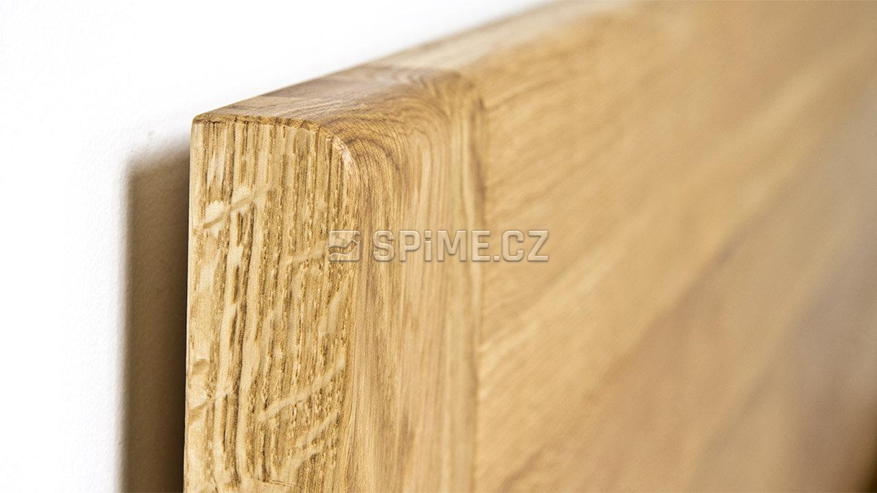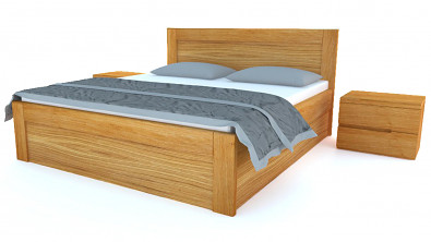 Postele s úložným prostorem z masivu ONTARIO DUB je naší nejprodávanější dubovou postelí, u které si můžete zvolit výšku hlavového čela a drásání. Přední hrany hlavového a nožního čela jsou zaoblené. Šíře masivu je u bočnic i čel postele 3,7 cm. Základní výška hlavového čela postele je 85 cm, s příplatkem lze zvolit výšku čela 100 cm. Výška bočnice je 45 cm, výška sedu je cca 55-60 cm (záleží na výšce matrace a lamelového roštu). Spojení bočnice a čela je provedeno postelovým kováním od Hettich. U středu postele z masivu drží rošty masivní středová lať s výškově nastavitelnou nohou latí. Postel se skládá z bočnic, nožního čela, hlavového čela a středové latě. Systém závěsného kování umožňuje snadnou montáž i demontáž. Postel je opatřena přírodní povrchovou úpravou od Německého výrobce BIOFA - směs přírodních olejů a pryskyřic s vysokým obsahem včelího vosku.