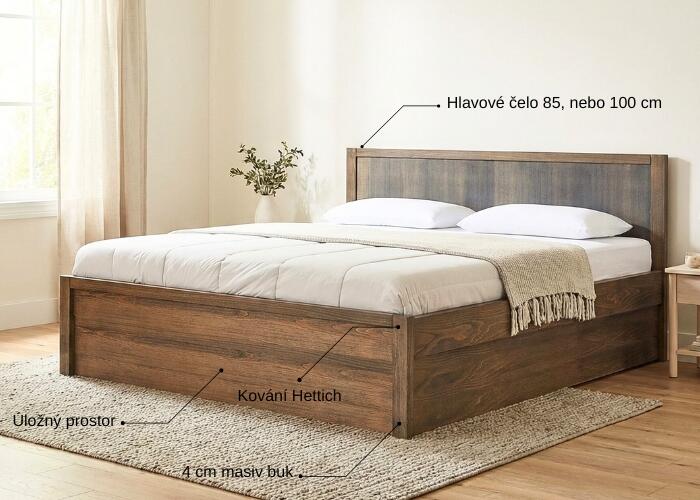 Postel z masivu s úložným prostorem PARMA Buk