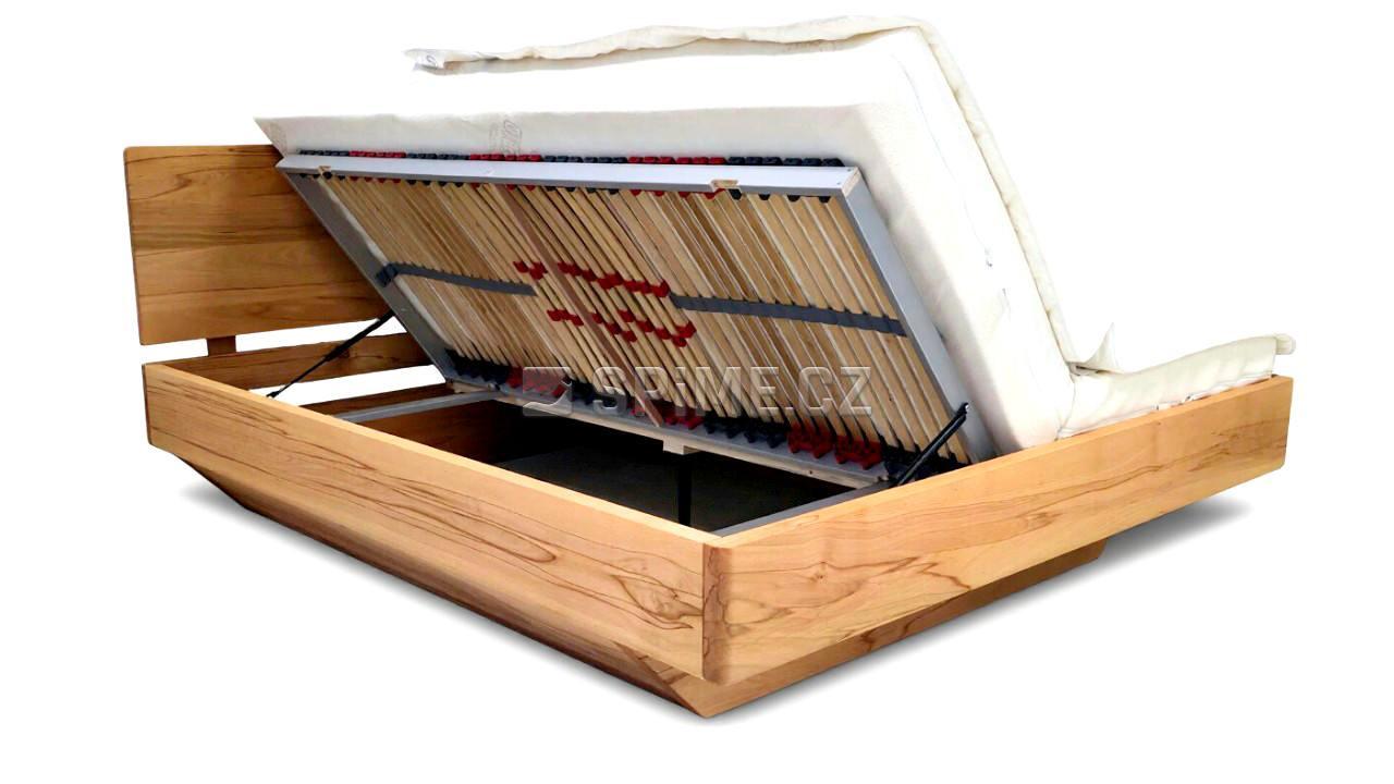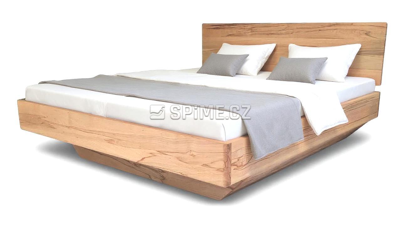 Postel z masivu LEVANTE dvoulůžko. Celomasivní dřevěná levitující postel o šíři masivu 2,8 cm s čalouněným čelem.