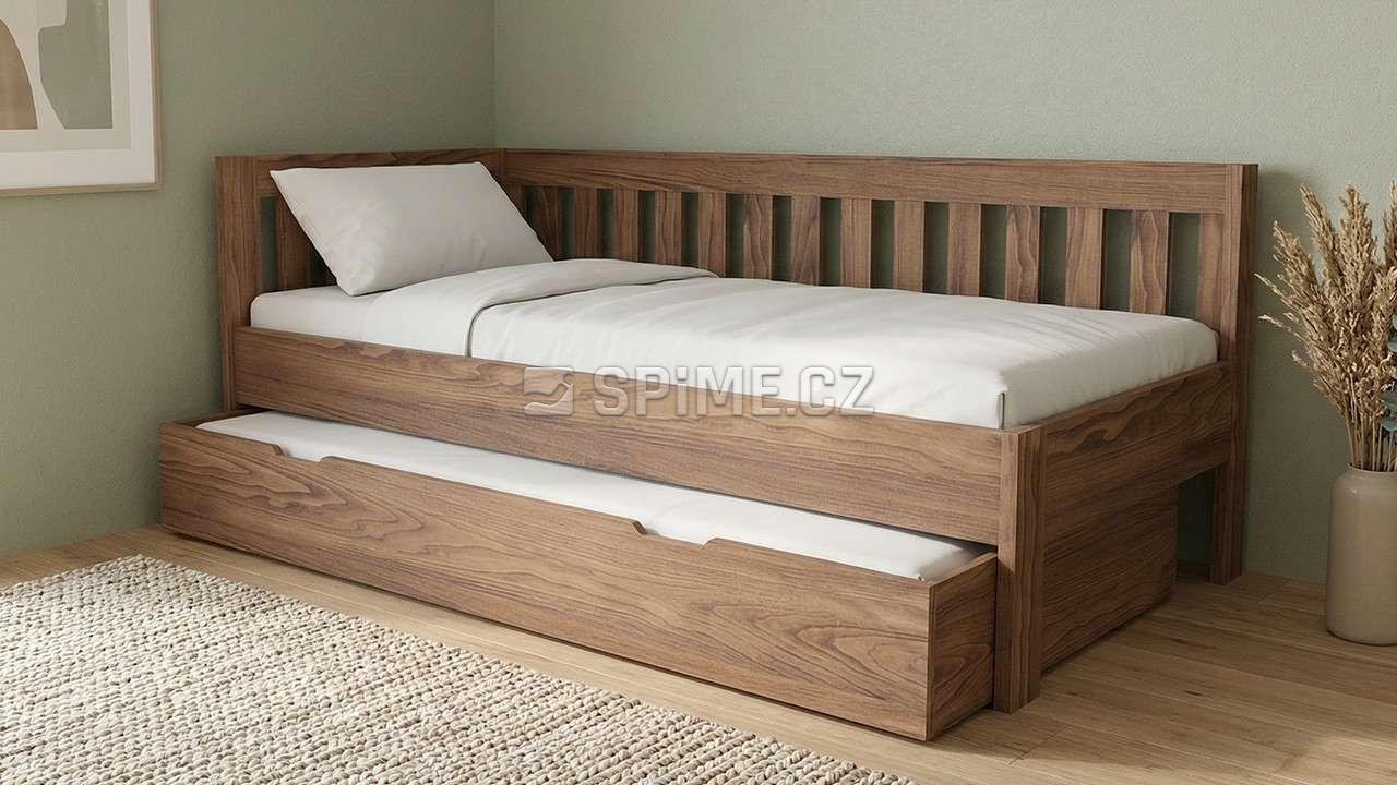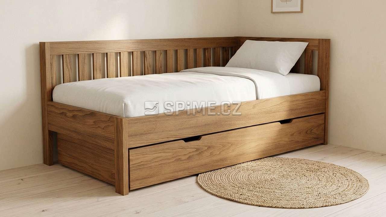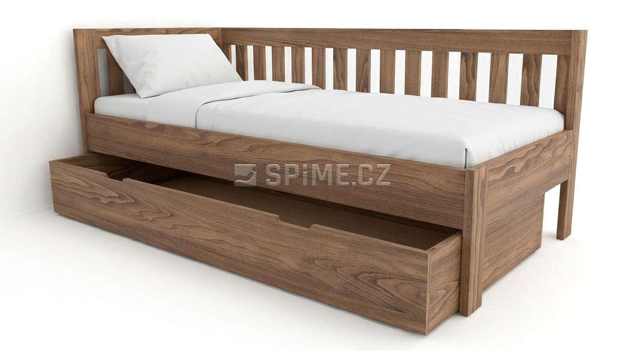 Masivní rohové jednolůžko SANY do L s multifunkční zásuvkouPostel z masivu SANY do L s přistýlkou
