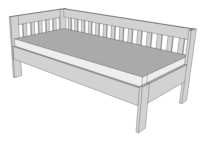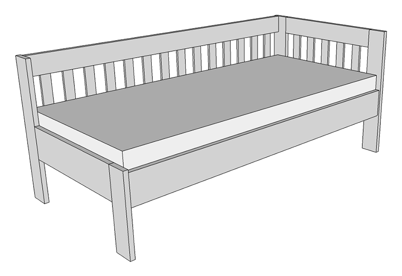 Spojení bočnic a čel je provedeno postelovým kováním od značkového výrobce Hettich. Postel se skládá z bočnic, nožního čela a hlavového čela. Systém závěsného kování umožňuje snadnou montáž i demontáž.