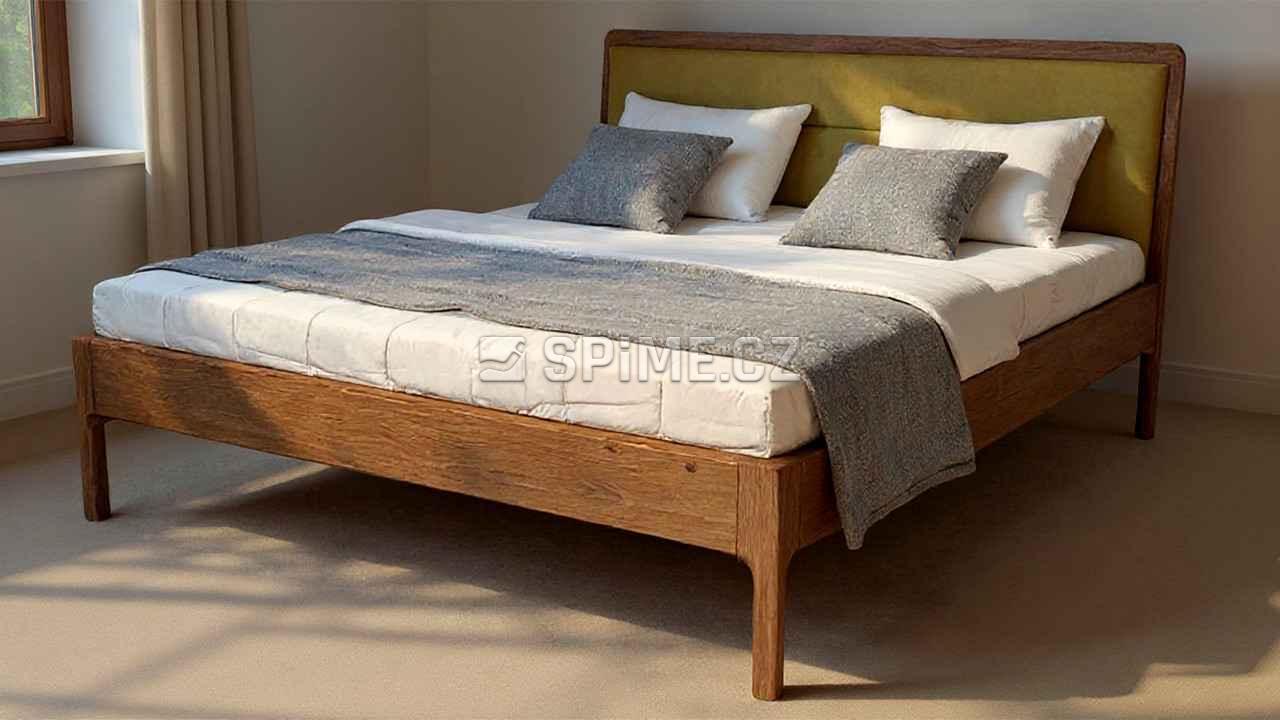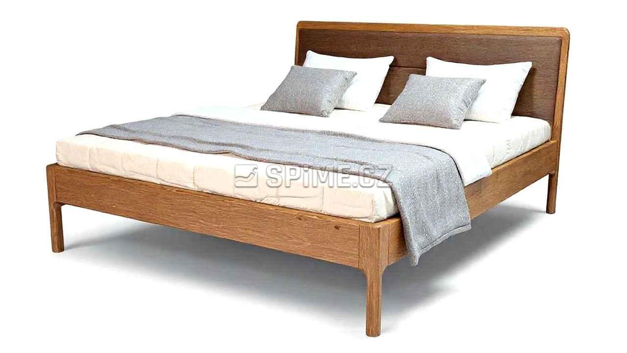 Postel z masivu DEIRA dvoulůžko. Celomasivní dřevěná postel o šíři masivu 4 cm s čalouněným čelem.