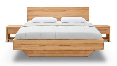 Postel z masivu GRENOBLE dvoulůžko se stolky. Celomasivní levitující dřevěná postel o šíři masivu rámu 4 cm.