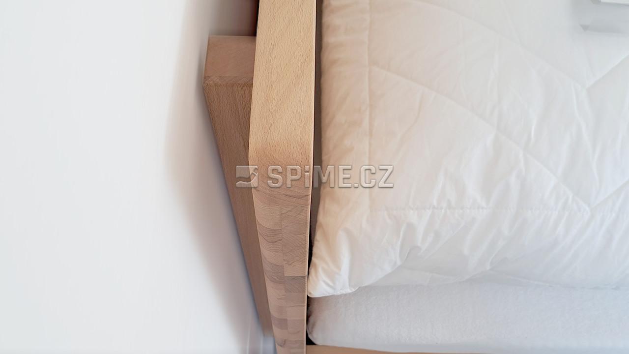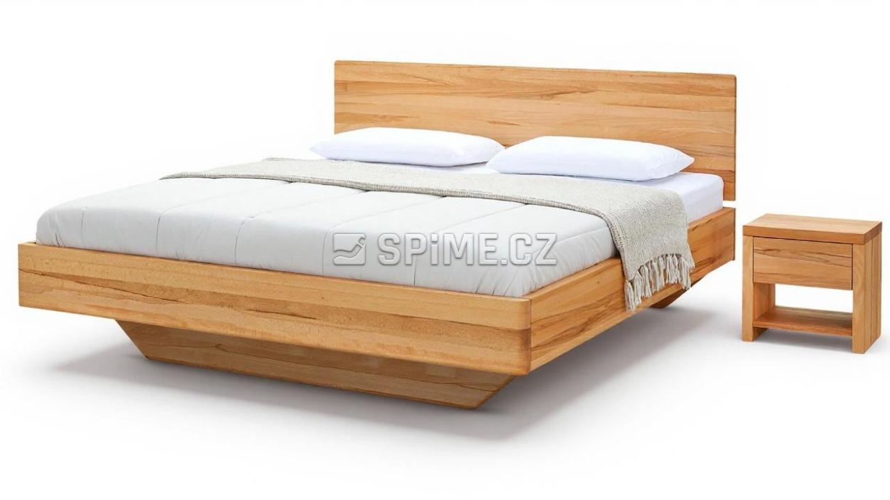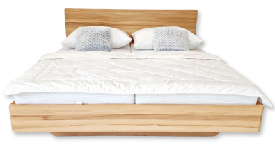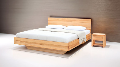 Postel z masivu LEVANTE dvoulůžko. Celomasivní dřevěná levitující postel o šíři masivu 2,8 cm s čalouněným čelem.