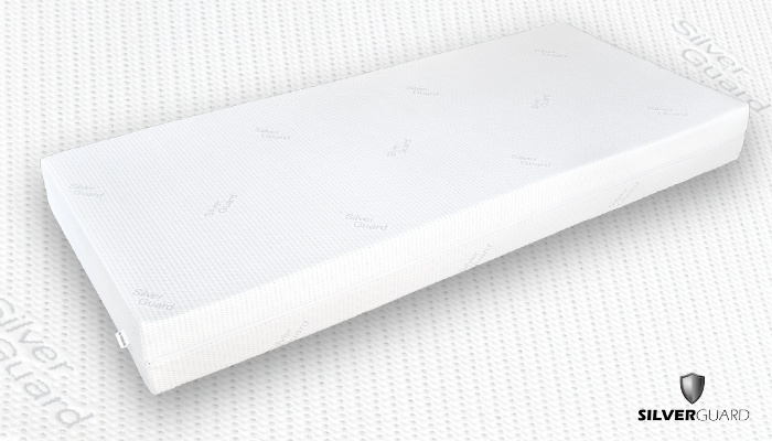 Potah SILVER GUARD® - Vysoká elasticita potahu, podpora pružnosti jádra matrace, vysoká odolnost a snadná péče, to je potah Silverguard®. Potah obsahuje prvky iontového stříbra, toto složení podporuje trvalou čerstvost a hygienu, zabraňuje nepříjemným pachům a eliminuje bakterie produkující zápach. Silverguard® působí trvale i po častém používání, praní a čištění. Silverguard® nepoškozuje kožní flóru, splňuje standard Oekotex 100. Potah je vyroben z delších Vortexových vláken, které mají úpravu proti třepení, takže nehrozí vytváření nechtěných žmolků po kontaktu z prostěradlem. Složení: 66% PES + 32% Viskóza + 2% PA, gramáž látky: 300g/m2. Jádru matrace přidá celkově na výšce přibližně 1 cm. Potah SILVER GUARD je velmi příjemný na omak, působí velmi luxusně a má vortexová vlákna, které jsou delší a netřepí se, tento druh vlákna je nejúčinější úprava proti tvoření žmolků, přesto doporučujeme použití matracového chrániče, který chrání životnost potahů.