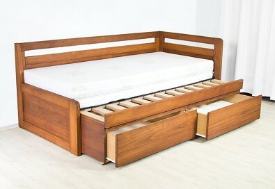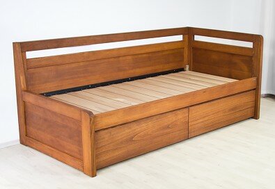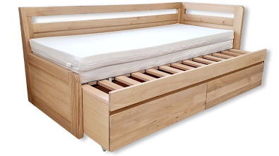 Rozkládací postel z masivu SOFA DUO s úložným prostorem je dřevěná postel o síle masivu 4 cm. Provedení masiv Buk nebo s příplatkem Dub, Javor, Jasan.