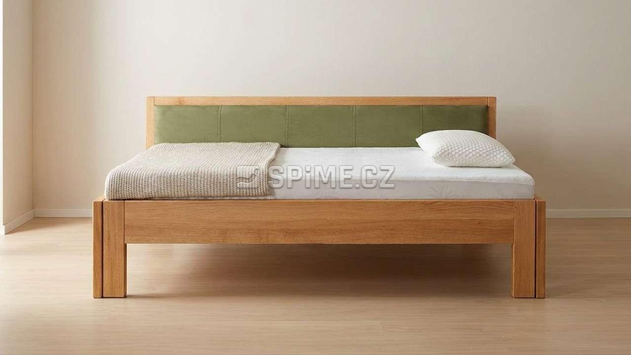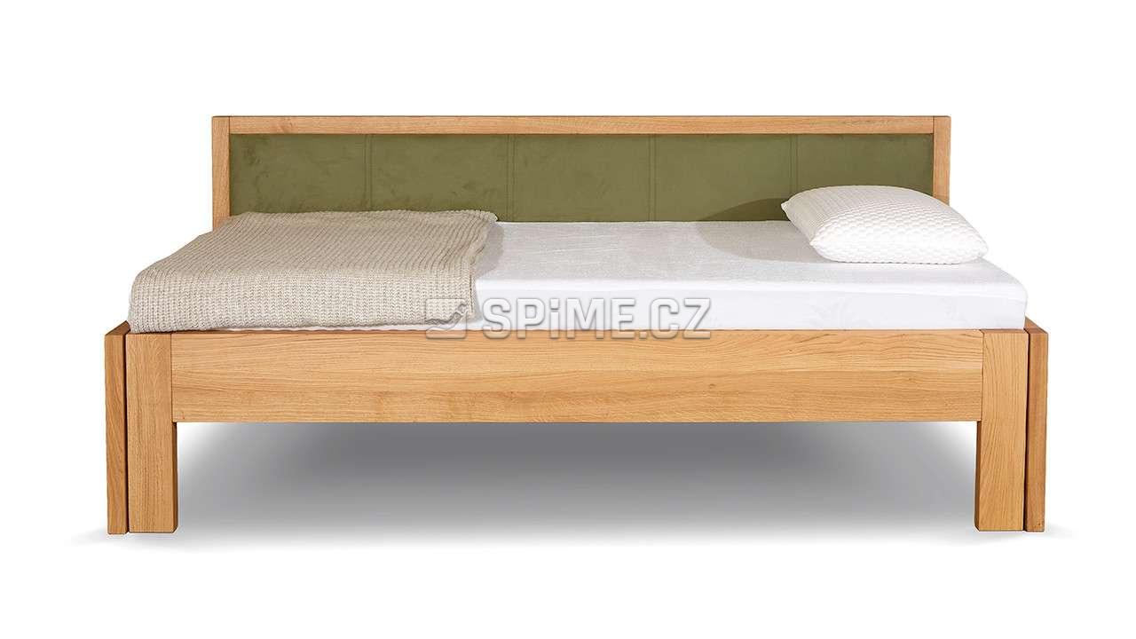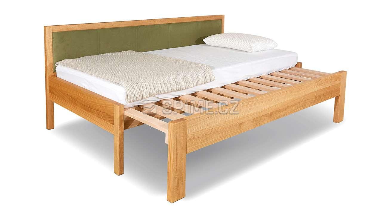 Rozkládací postel z masivu SOFA DUO-L s úložným prostorem a zvýšeným jedním čelem. Celomasivní dřevěná postel o šíři masivu 4 cm.
