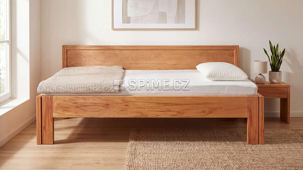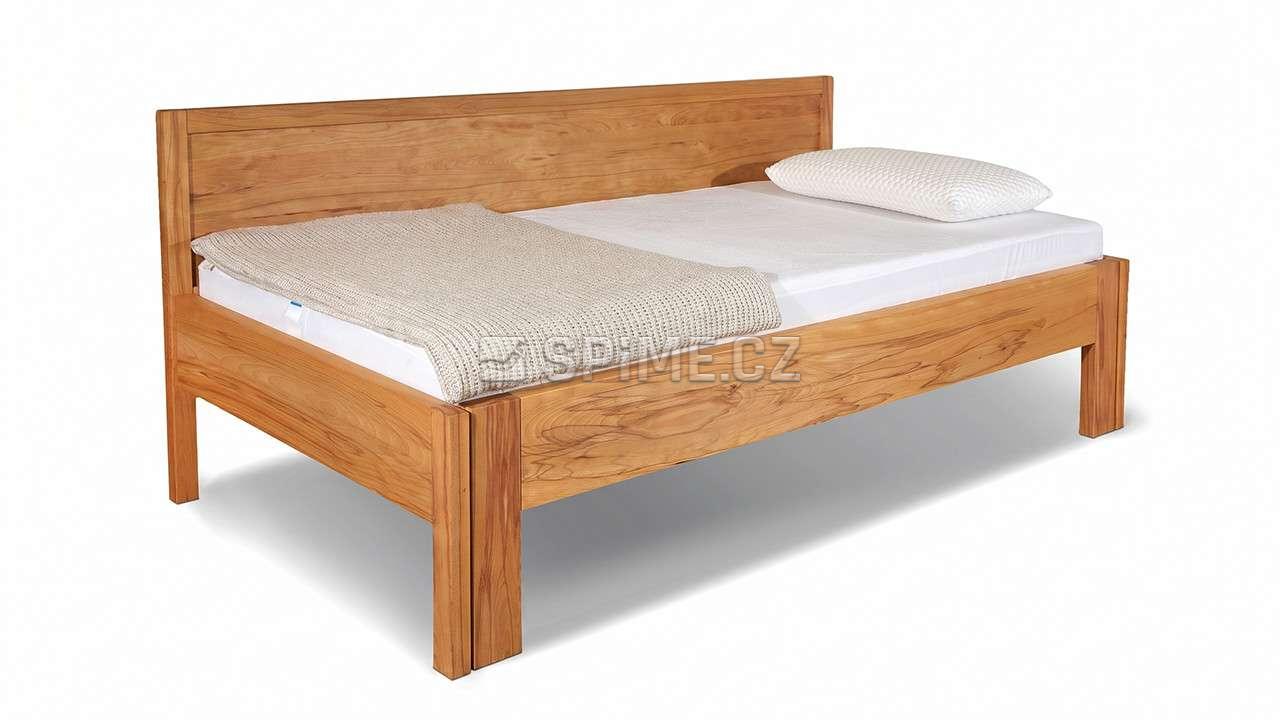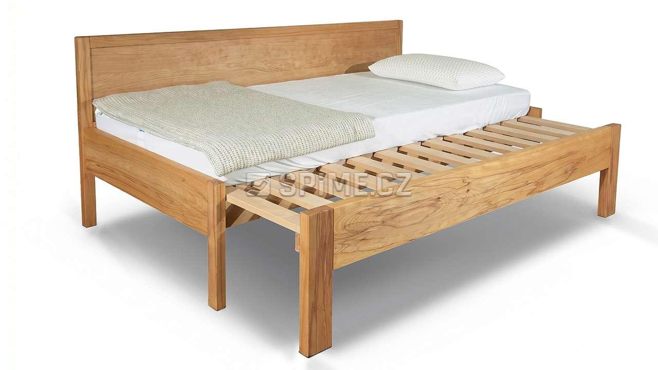 Rozkládací postel z masivu ISOLA. Celomasivní dřevěná postel o šíři masivu 4 cm s čalouněním.