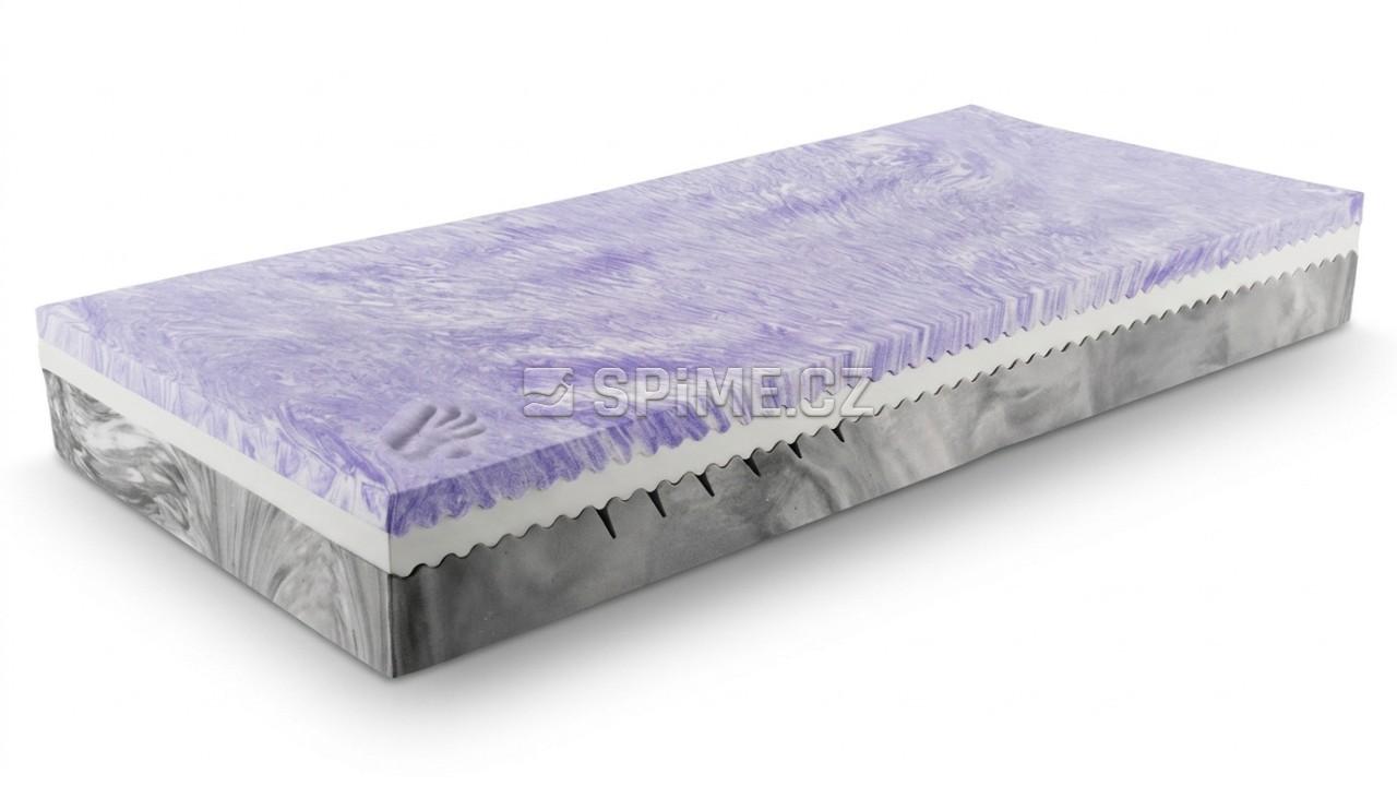 • Složení pěn: 5 cm ultra měkké visco uvolňující tlak + tuhá visco opora (85 kg/m³) + pevná HR pěna Lastilux