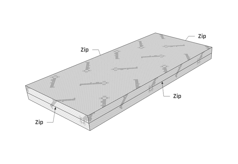 | Zip (bezpříplatkový): Základní zip na potahu se liší dle základní výbavy matrace. Zip "do L" umožní rozepnout jednu krátkou a dlouhou stranu. Zip "dokola" umožní rozepnout celý obvod a rozdělit potah na dvě části. | Dvě strany - zip do L |